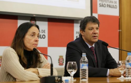 Vice-prefeita, Nádia Campeão, e Haddad (Foto: Cesar Ogata/SECOM)
