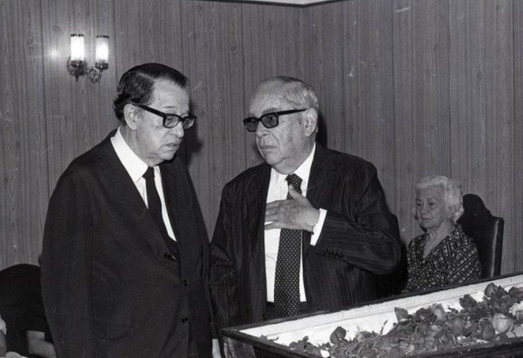 José Jobim, à esquerda, no velório do irmão Danton, em 1978. Junto com ele está o almirante Amaral Peixoto, genro de Getúlio Vargas.