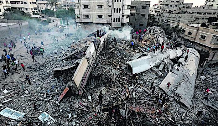 Foto do Dia Destroços de edifício destruído por ataque aéreo israelense em Gaza. Tags: Bombardeio Faixa de Gaza genocídio Israel Palestina Notícias relacionadas Marielle Vive Viva Marielle A cidade de Turim, na Itália, agradece a ajuda dos médicos cubanos no combate ao coronavírus. Banho de espuma. Um ciclista sul-africano tenta se orientar na espuma que surgiu do mar e invadiu algumas ruas da Cidade do Cabo, depois de uma forte tempestade (foto: Nic Bothma EPA-EFE)