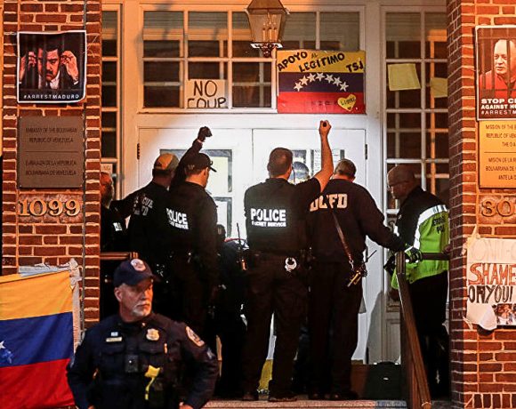 Ativistas do grupo de defesa dos direitos humanos Codepink ocupavam a embaixada venezuelana desde o final de abril para evitar que a oposição assuma o poder. O governo venezuelano caracterizou a invasão das autoridades dos EUA em sua embaixada como uma violação do direito internacional.
