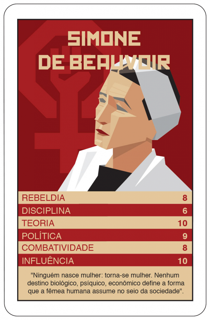 Com Beauvoir, o baralho Super-Revolucionários chega a sua nona carta. O projeto, publicado por Opera Mundi e pelo site Nocaute, já trouxe as cartas de Ho Chi Minh, Leon Trotsky, Olga Benario, Karl Marx, Salvador Allende, Tina Modotti, Carlos Marighella e Rosa Luxemburgo.
