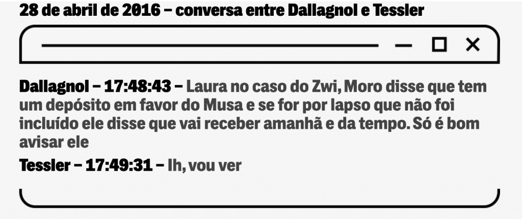 Pois isso aconteceu na Lava-Jato, só que a favor da acusação. Uma conversa de 28 de abril de 2016 mostra que Moro orientou os procuradores a tornar mais robusta uma peça. No diálogo, Deltan Dallagnol, chefe da força-tarefa em Curitiba, informa a procuradora Laura Tessler que Moro o havia avisado sobre a falta de uma informação na denúncia de um réu — Zwi Skornicki, representante da Keppel Fels, estaleiro que tinha contratos com a Petrobras para a construção de plataformas de petróleo, e um dos principais operadores de propina no esquema de corrupção da Petrobras. Skornicki tornou-se delator na Lava-Jato, e confessou que pagou propinas a vários funcionários da estatal, entre eles, Eduardo Musa, mencionado por Deltan na conversa. “Laura no caso do Zwi, Moro disse que tem um depósito em favor do Musa e se for por lapso que não foi incluído ele disse que vai receber amanhã e dá tempo. Só é bom avisar ele”, diz. “Ih, vou ver”, responde a procuradora. No dia seguinte, o MPF incluiu um comprovante de depósito de 80 000 dólares feito por Skornicki a Musa. Moro então publica sua sentença e recebe o aditamento com a informação sobre o depósito depois disso. Ou seja: ele claramente ajudou um dos lados do processo a fortalecer sua posição.