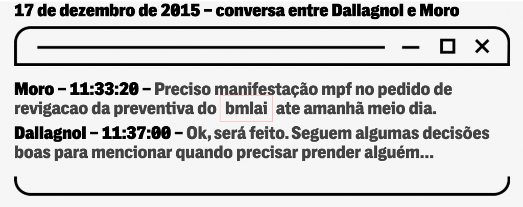Num dos exemplos que mostram que, sim, houve desvio na Lava Jato, Moro e Dallagnol mostram intimidade na troca de informações – um comportamento que a nossa reportagem classificou como sinal do “nível elevado (e indesejável) da promiscuidade entre os dois. E que pode levar a suspeição de Moro. No episódio, Dallagnol não vê problemas em enviar ao juiz exemplos de decisões de outros magistrados para quando ele “precisar prender alguém” ao responder sobre o pedido de revogação da prisão preventiva do amigo de Lula, José Carlos Bumlai, em dezembro de 2015.