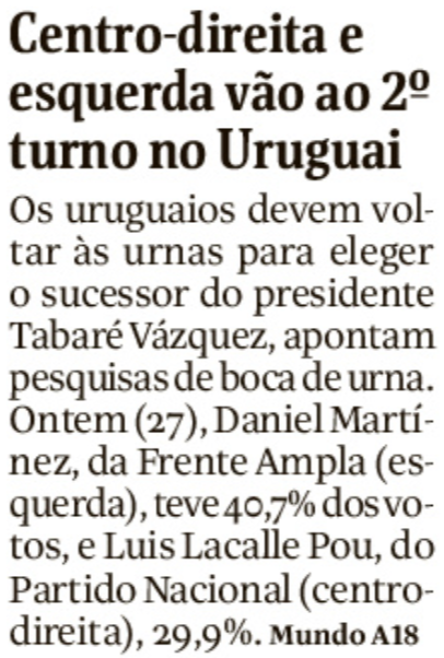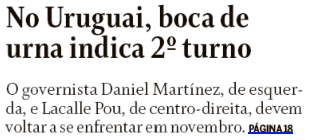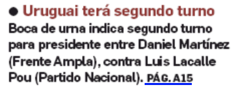 As eleições no Uruguai também estão nas primeiras páginas dos três maiores jornais do país.