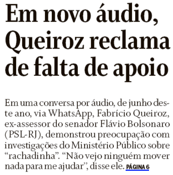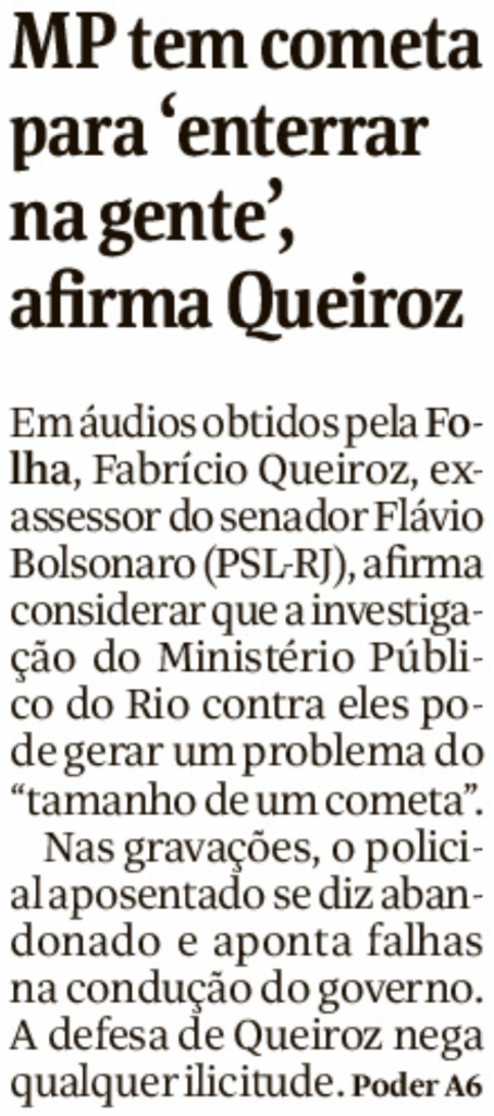 Fabrício Queiroz, ex-assessor de Flávio, filho de Bolsonaro, volta às manchetes sem que nada aconteça a ele. Sequer ser chamado para depor.