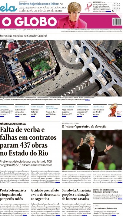 O Globo surpreendeu os seus leitores no final de semana, trocando o azul pelo rosa de outubro, uma campanha contra o câncer de mama.