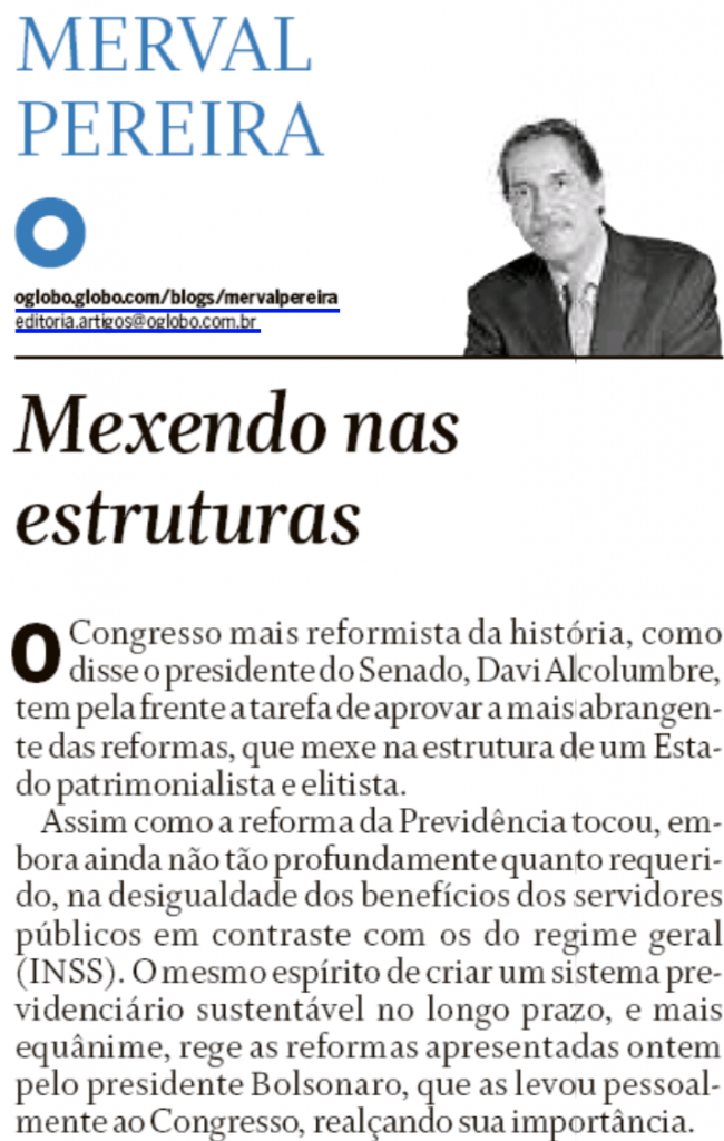 O colunista de O Globo, Merval Pereira, citado na video-cassetada do Seu Jair, voltou de férias meio pianinho: “Uma reforma que revigora a Federação”, diz ele.