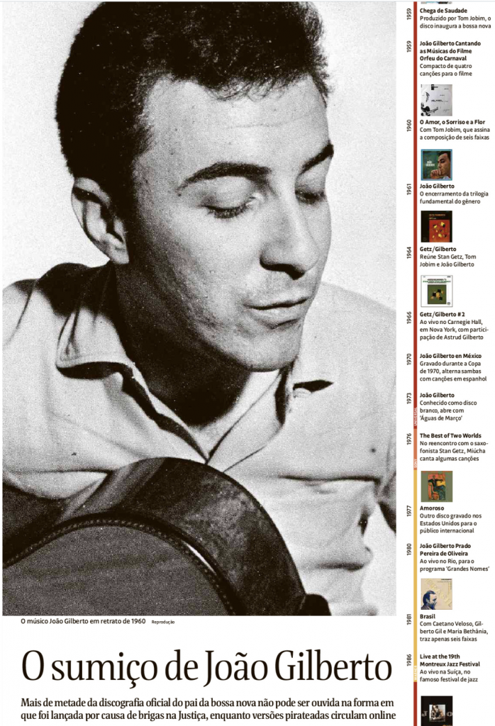 E a obra embargada de João Gilberto na capa da Ilustrada, da Folha.
