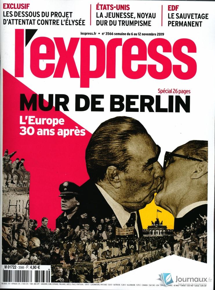Na capa da revista semanal francesa L’Express, que começou a circular hoje, os 30 anos da queda do muro de Berlim.