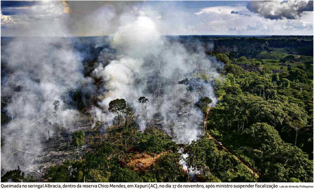 Nas manchetes, o pacotinho anticrime, a reforma dos militares e o Acre pegando fogo por irresponsabilidade do ministro do Meio-Ambiente.