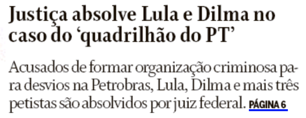 “Justiça absolve Lula e Dilma no caso do quadrilhão do PT”