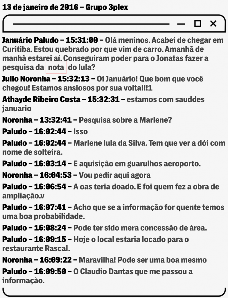 Segundo as conversas, Dantas disse ao procurador Januário Paludo, um dos veteranos da Lava Jato, que Marlene teria recebido da empreiteira OAS um imóvel no novo terminal de passageiros do aeroporto internacional de Guarulhos. A fé da Lava Jato em seus porta-vozes na imprensa bastou para que Paludo dissesse aos colegas que pediria informalmente à Receita Federal – ou seja, sem controle judicial – uma devassa na vida de Marlene, como Intercept e Folha de S.Paulo já mostraram.