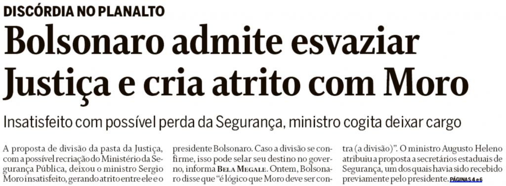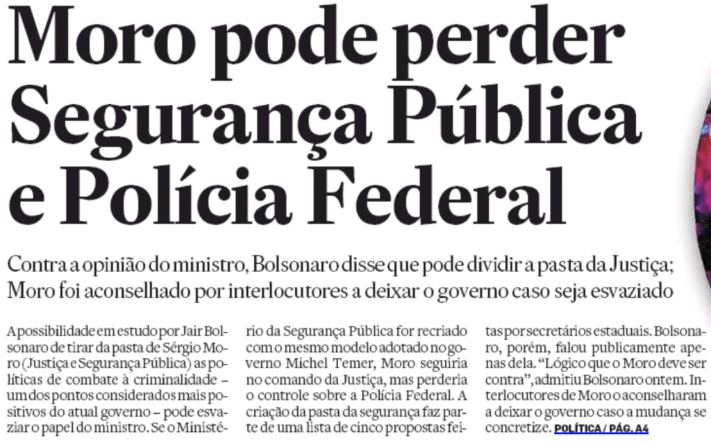 Imagine a cara do ministro Sergio Moro ao bater os olhos nas manchetes de primeira página dos principais jornais do país.