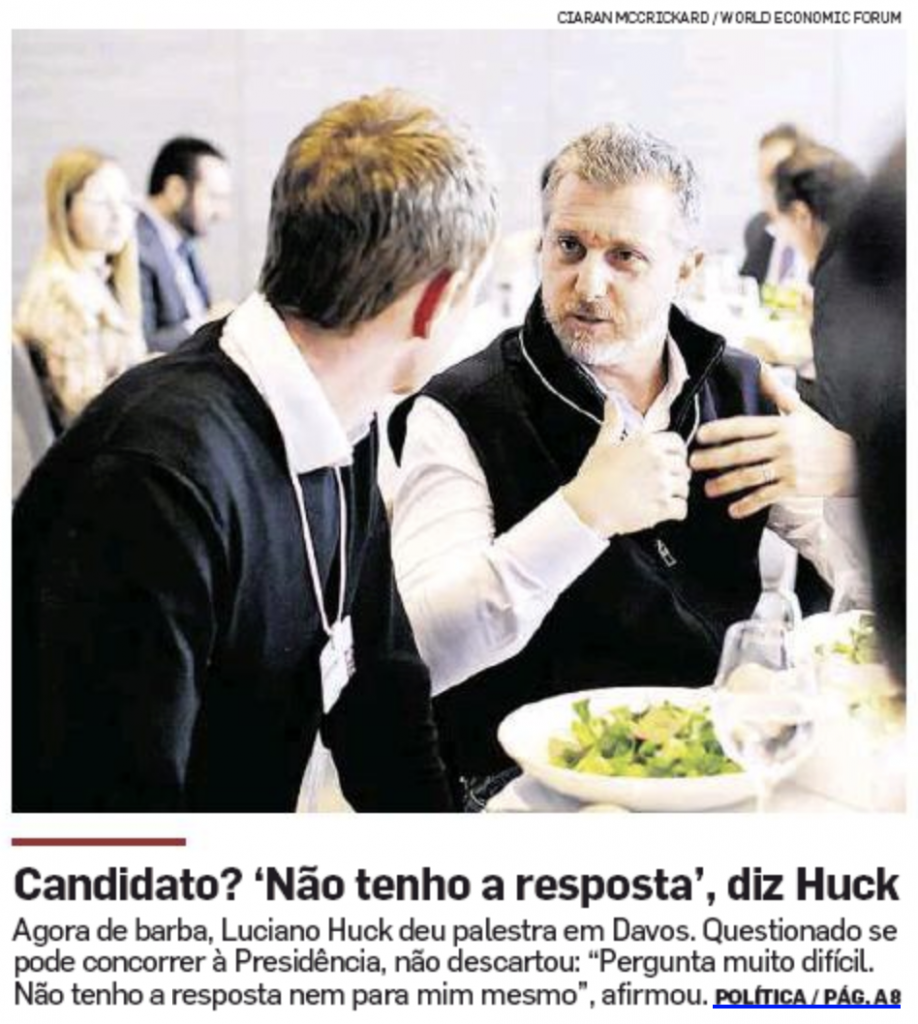 Luciano Huck (de barba) na foto em destaque do Estadão na primeira página, bem tucano, diz que nem ele sabe se será candidato nas eleições de 2022.