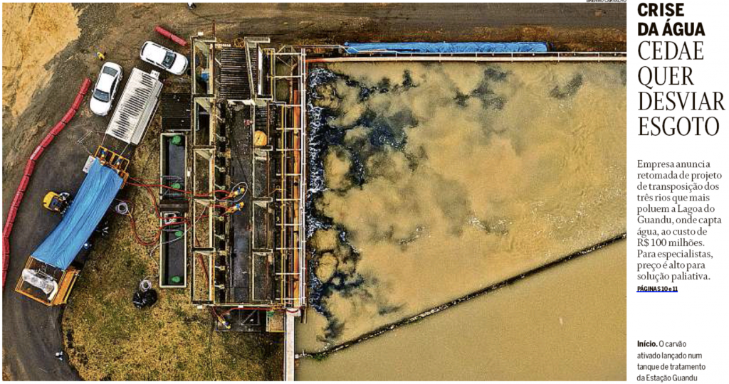 No Globo, a foto é da água suja carioca.