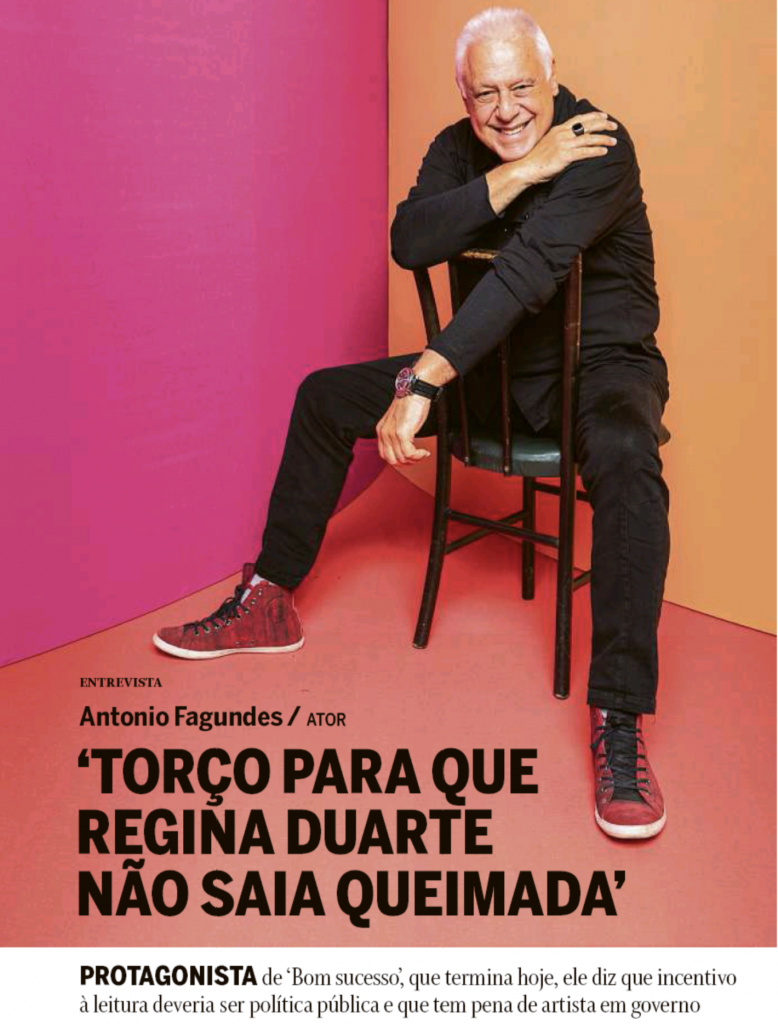 Na capa do Segundo Caderno, o ator Antonio Fagundes diz: “Torço para que Regina Duarte não saia queimada”.