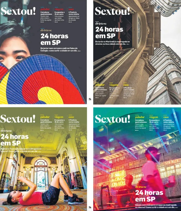 A novidade do Estadão desta sexta-feira é o lançamento (apenas para São Paulo) do caderno Sextou!, um bom nome. Na verdade, é a reunião dos cadernos Paladar, Casa e Divirta-se. Três em um, repaginado. Na nossa opinião, um bom caderno. Na estreia, quatro capas diferentes.