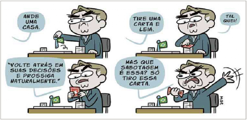 O cartum de Chico Caruso mostra um ministro em apuros.