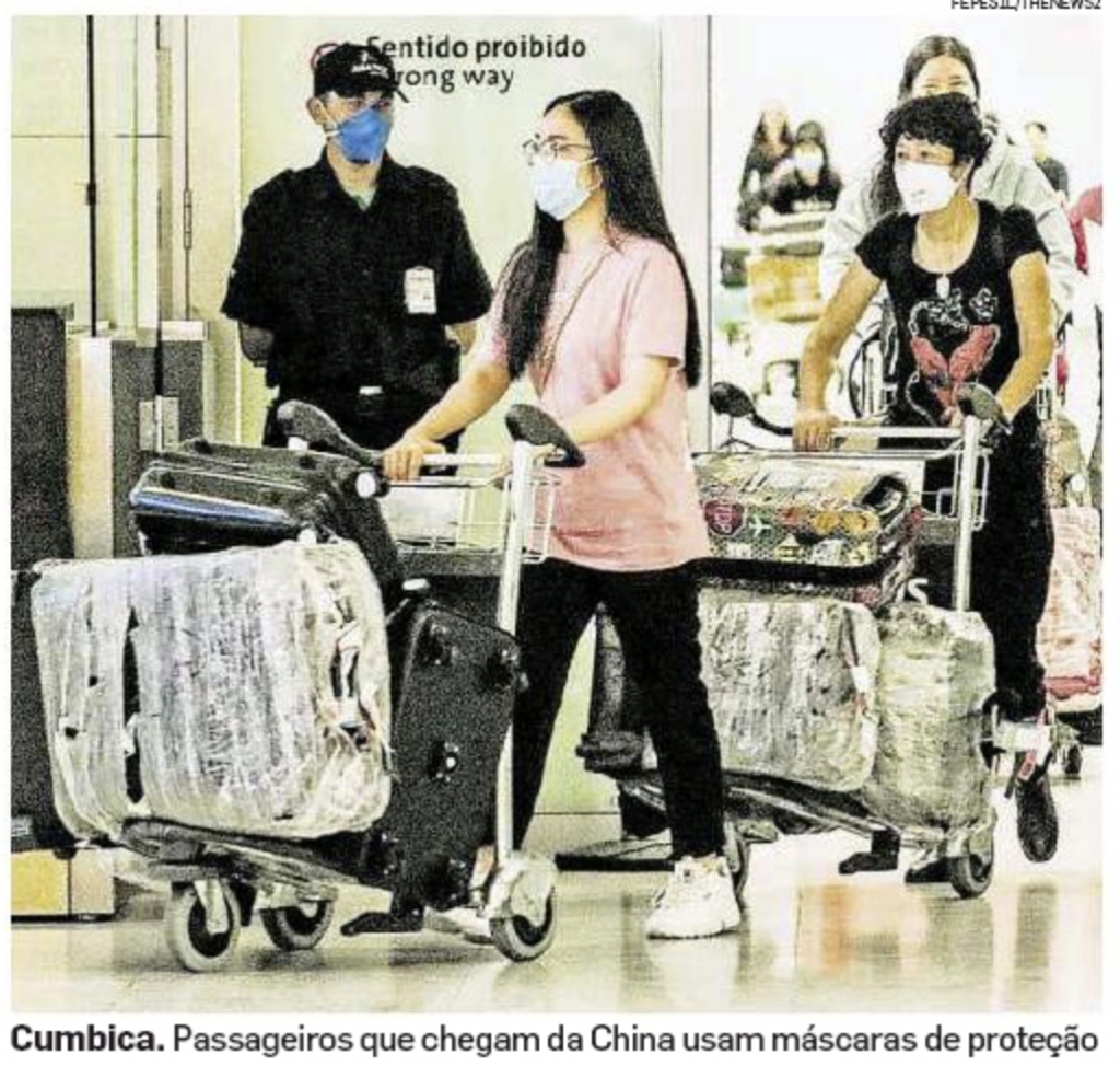 Na foto em destaque, chineses chegam ao aeroporto de Cumbica, em Guarulhos.