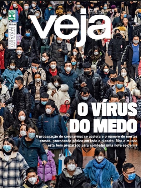 Nas capas da Economist e da Veja, o coronavírus. A capa da inglesa nem é tão bonita, mas a ideia é muito boa.