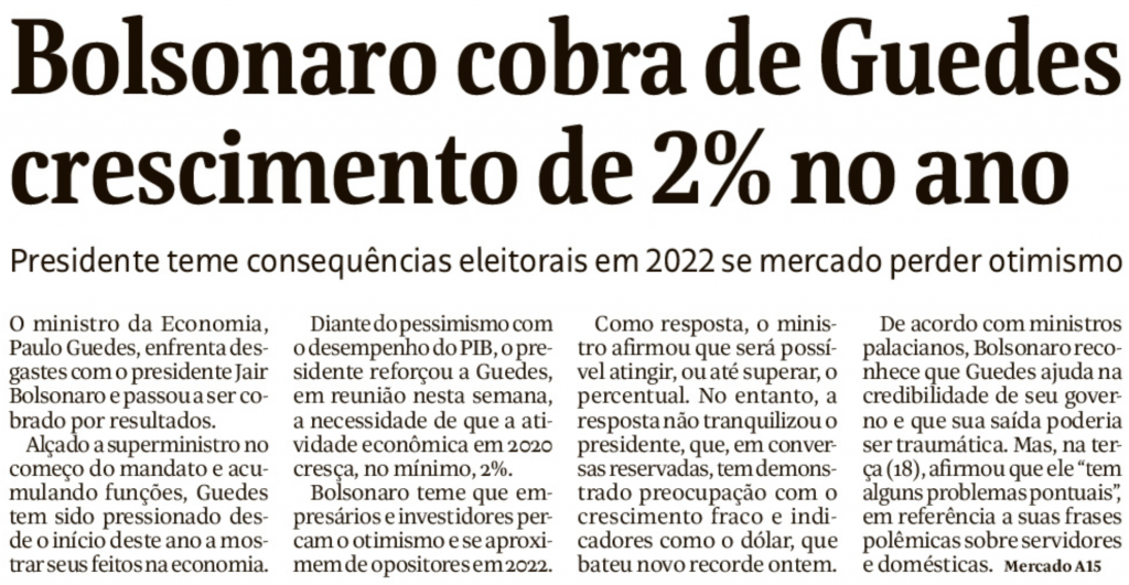 O presidente Bolsonaro dá uma dura no ministro da Economia: ou cresce ou sai!