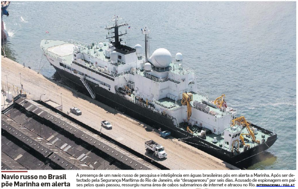 Na foto em destaque, navio russo no Brasil põe Marinha em alerta.