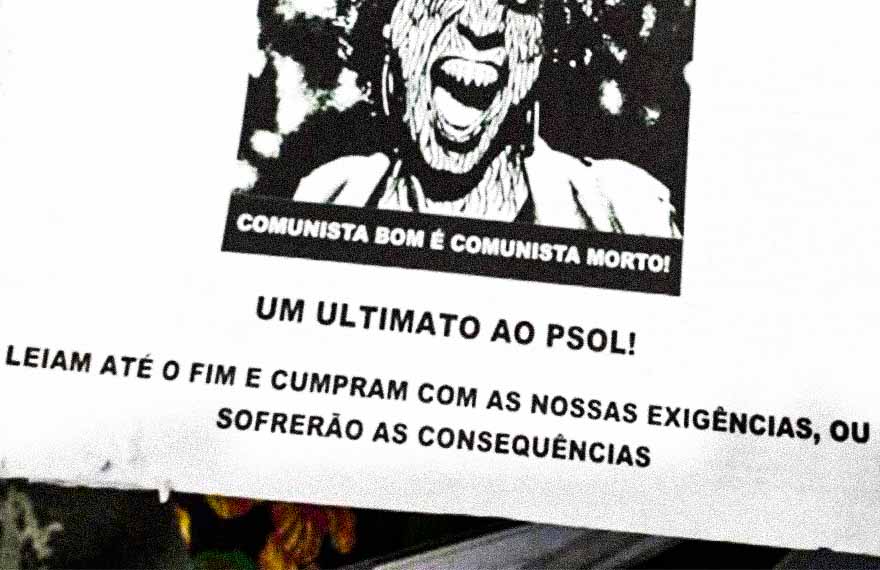 O ataque à sede do PSOL em Niterói veio, na madrugada de quinta-feira (20), em forma de panfletos com ameaças: “Comunista bom é comunista morto” e “Leiam as nossas exigências ou sofrerão as consequências”. No panfleto, o desenho do rosto da vereadora Marielle Franco, com uma foice e um martelo na testa, morta há quase dois anos, e os dizeres: “Marielle ausente!”.