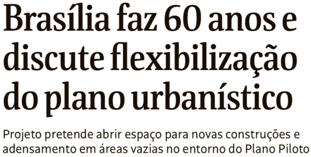 Matéria de duas páginas mostra que Brasília faz 60 anos e discute flexibilização do plano urbanístico