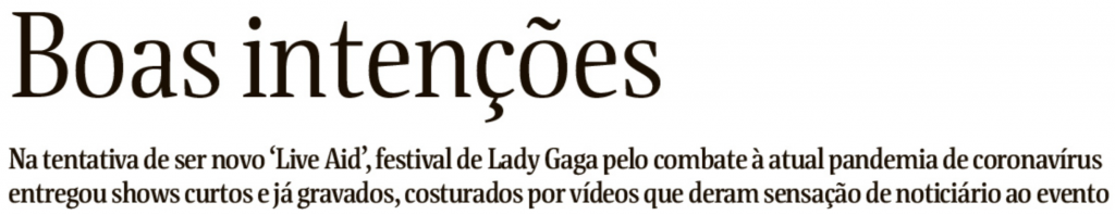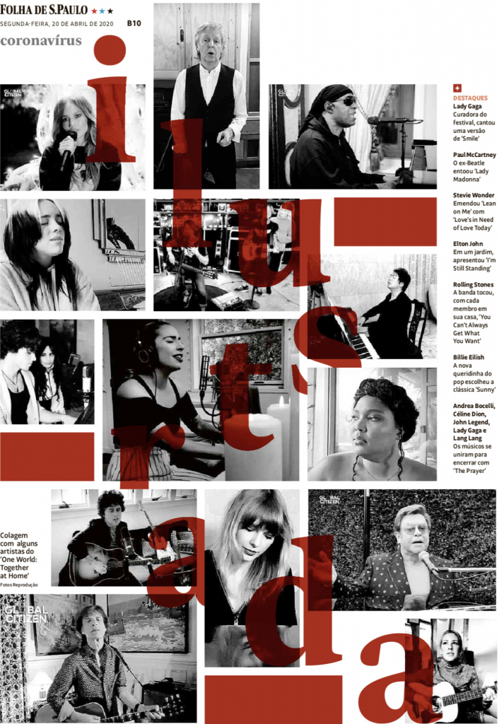 Na capa da Ilustrada, o festival de Lady Gaga visto online no mundo inteiro.