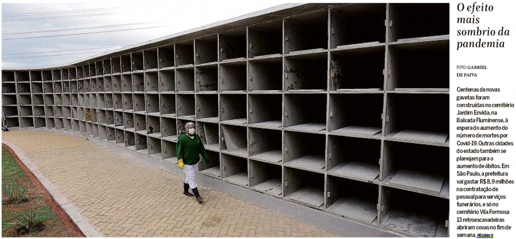 Na foto em destaque, centenas de novas gavetas construídas no cemitério Jardim Envida, na Baixada Fluminense.