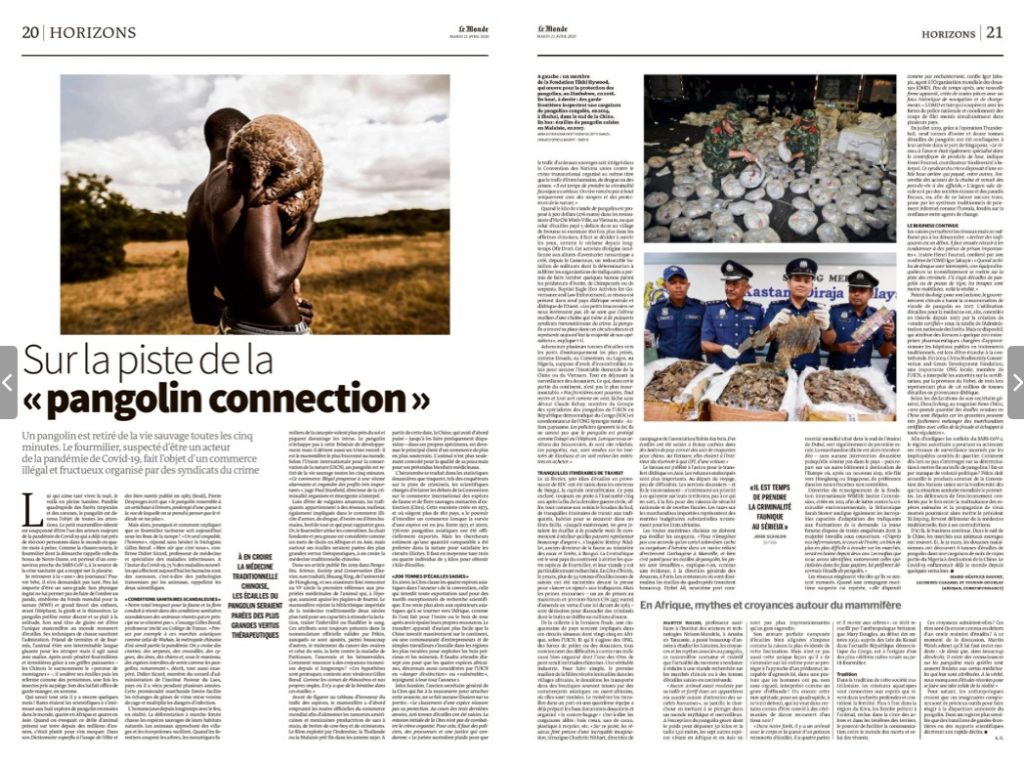 Em duas páginas, o francês Le Monde conta a história do pangolim, animal acusado de ser o responsável pelo coronavírus.