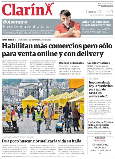Na primeira página do conservador jornal argentino El Clarín, Bolsonaro, o presidente na contramão.