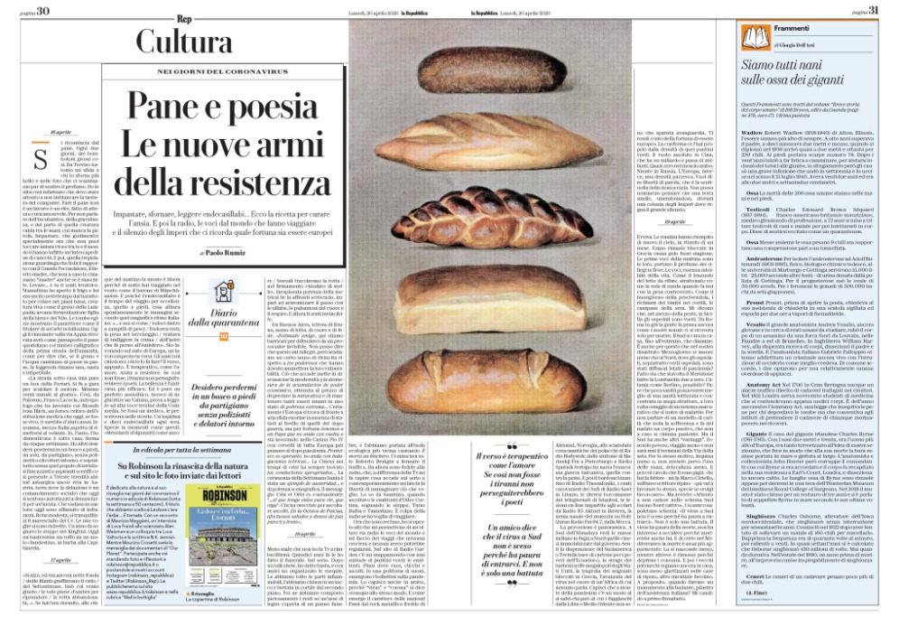 Em duas páginas, o italiano La Repubblica mostra como fazer pão em casa virou uma onda nos tempos de pandemia. O fenômeno foi visto também aqui no Brasil.
