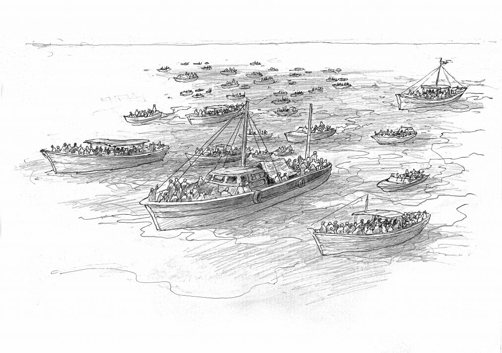 (…) Aproximadamente oitocentas embarcações repletas de passageiros deixaram Mariel no dia de ontem.