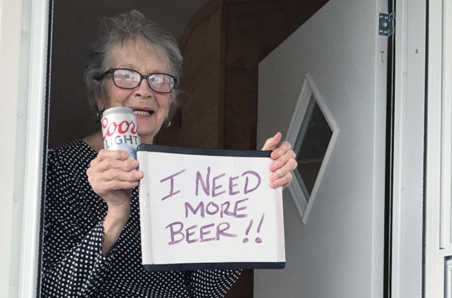 Foto do Dia Dona Olive Veronesi, 93 anos, que mora na Pensilvânia, postou esta foto nas redes sociais pedindo mais cerveja e recebeu em casa 10 pacotes da latinha da marca que ela segurava, a Coors. Tags: coronavírus quarentena Notícias relacionadas Marielle Vive Viva Marielle A cidade de Turim, na Itália, agradece a ajuda dos médicos cubanos no combate ao coronavírus. Banho de espuma. Um ciclista sul-africano tenta se orientar na espuma que surgiu do mar e invadiu algumas ruas da Cidade do Cabo, depois de uma forte tempestade (foto: Nic Bothma EPA-EFE)