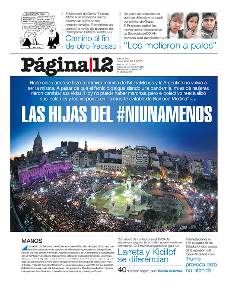 Na capa do jornal argentino Página 12, o quinto aniversário do movimento #niunamenos