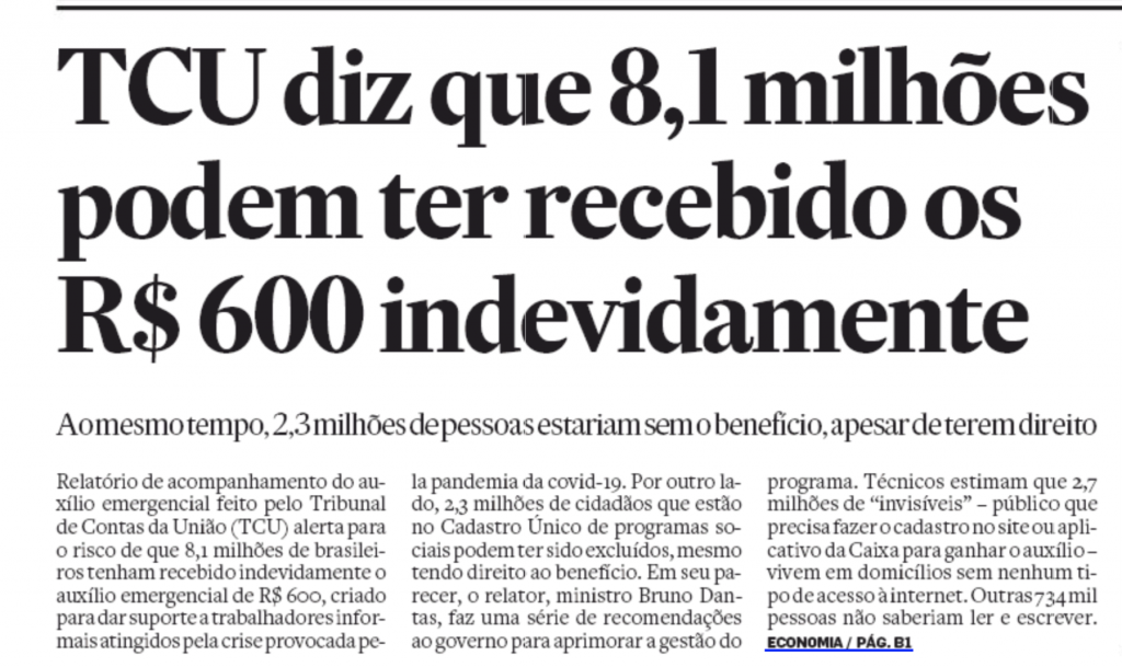 Nos dois jornais de São Paulo, anúncio do governo garante que a flexibilização inteligente está de acordo com a ciência. É ver pra crer.