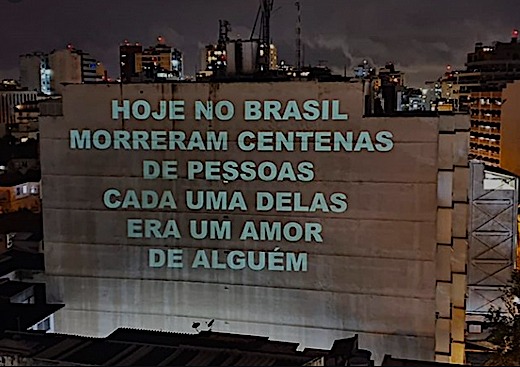 Em tempos de praga e confinamento, o novo tipo de protesto passou a acompanhar os panelaços contra o governo Jair Bolsonaro. As projeções feitas em paredões de prédios dão voz às pessoas que, dentro de casa, acham que bater panela é pouco para manifestar indignação política ou alertar sobre os cuidados recomendados contra o coronavírus.