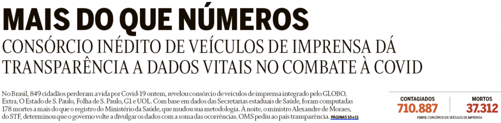 O Globo: “Mais que números. Consórcio inédito de veículos de imprensa dá transparência a dados vitais no combate à covid”