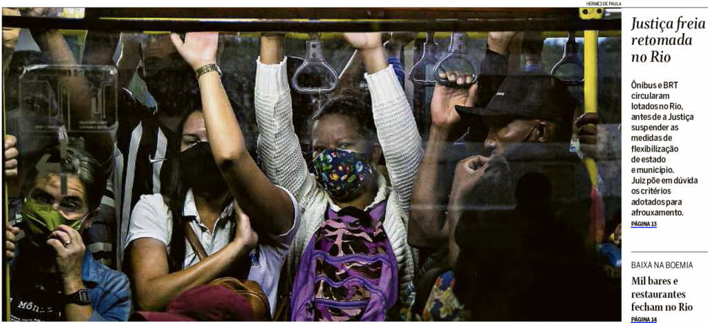 Ônibus circulam lotados no Rio de janeiro, no Globo.