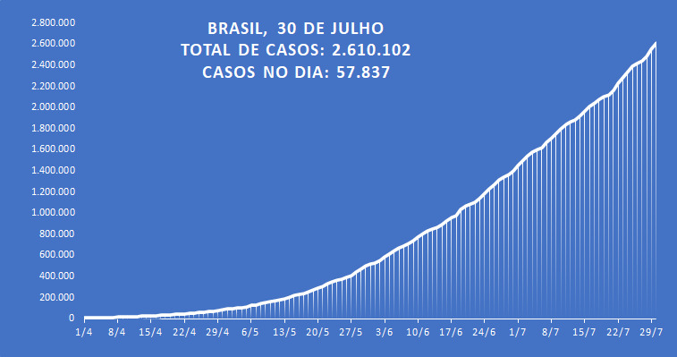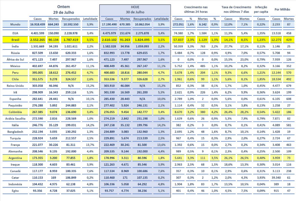 Covid-19 no Brasil e no mundo – 30 Julho 2020