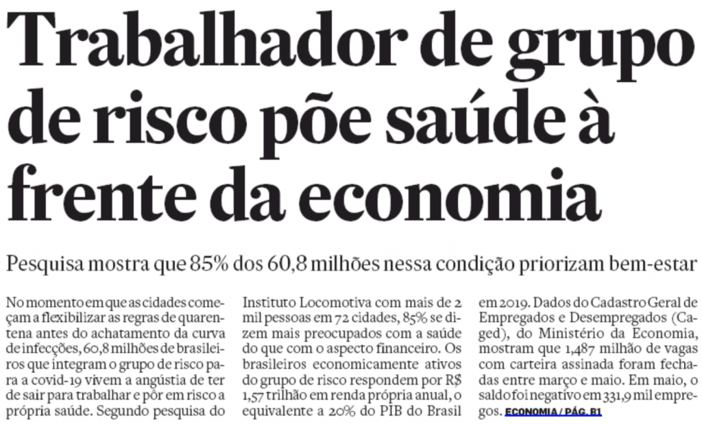 Vimos na primeira página do Estadão: