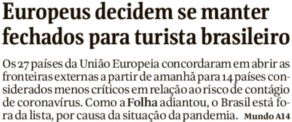 Na capa do caderno de turismo do mesmo jornal, como serão as primeiras férias de verão depois da pandemia.