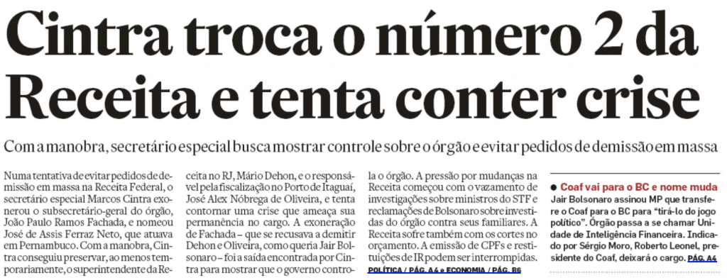 Começou com a queda do número 2 da Receita Federal, na tentativa de estancar uma crise.